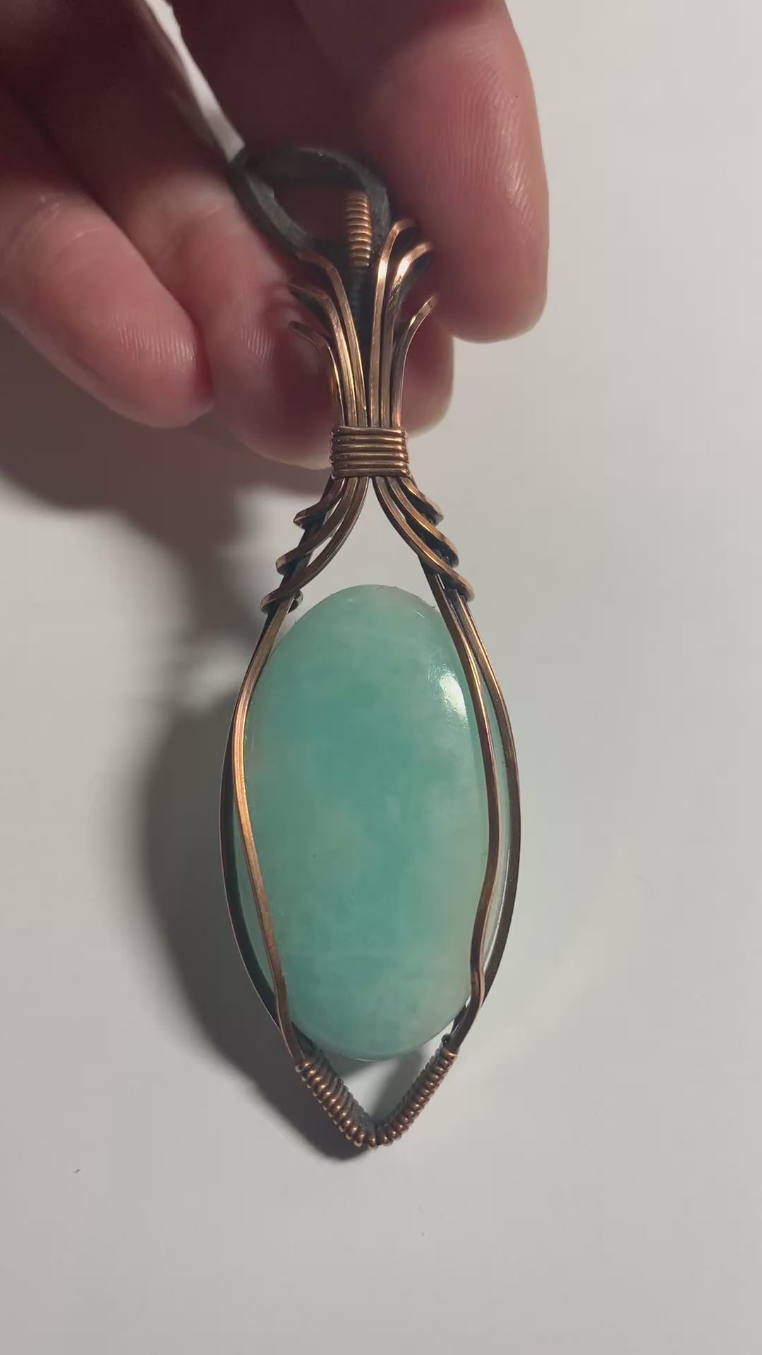 Hand wrapped in copper wire and oxidised to create an antique patina.