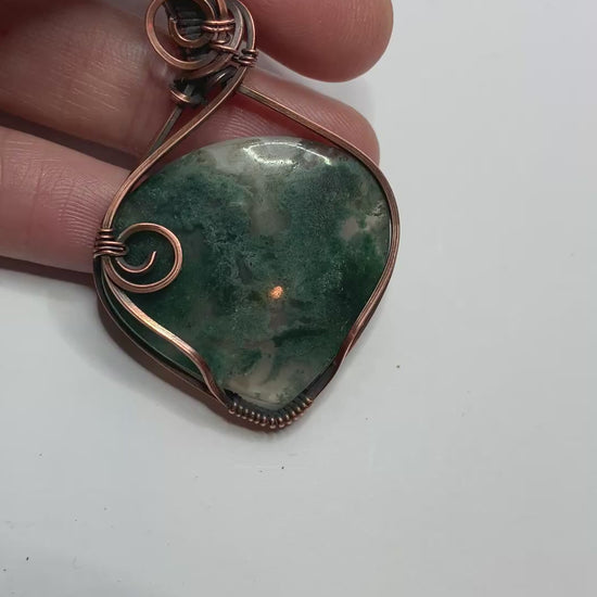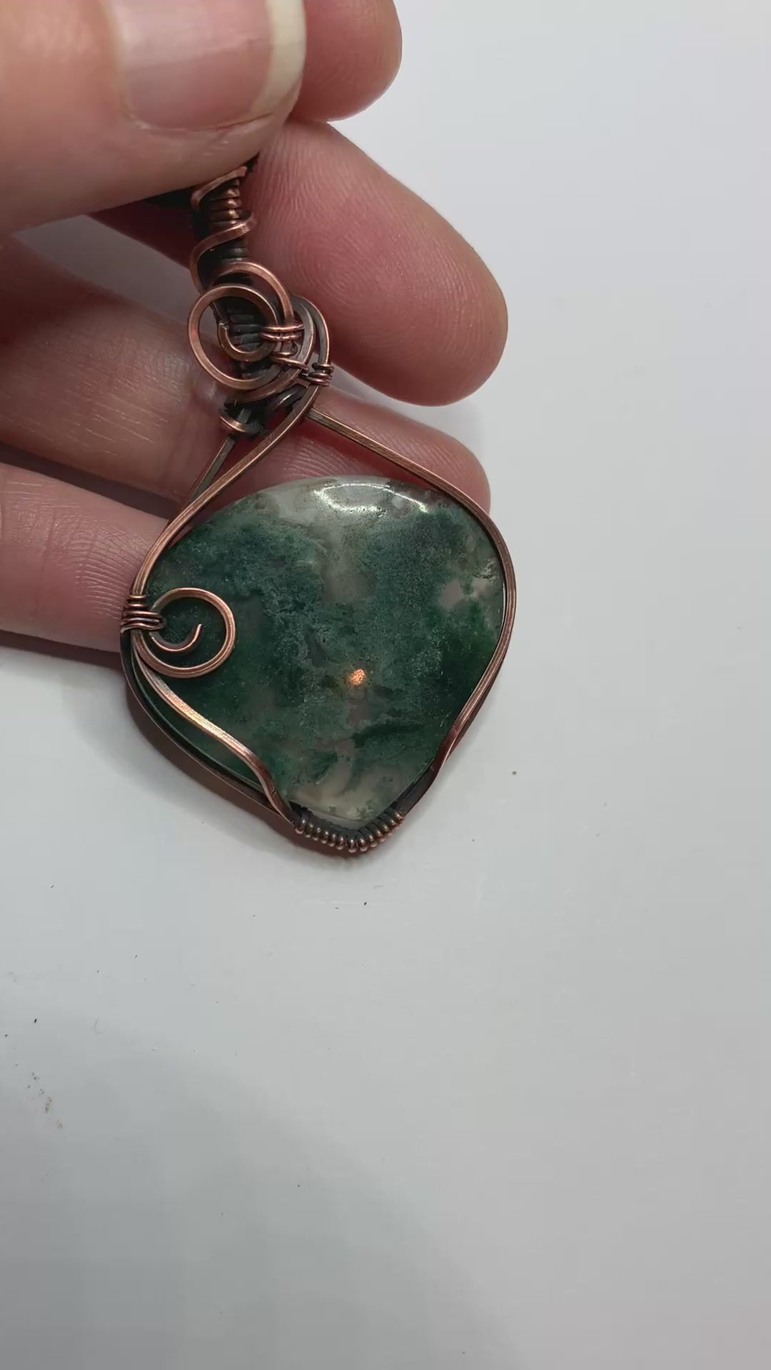 Hand wrapped in copper wire and oxidised to create an antique patina.