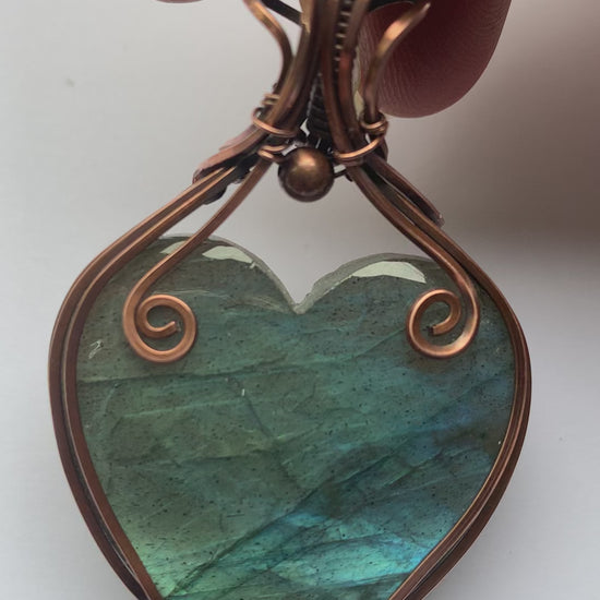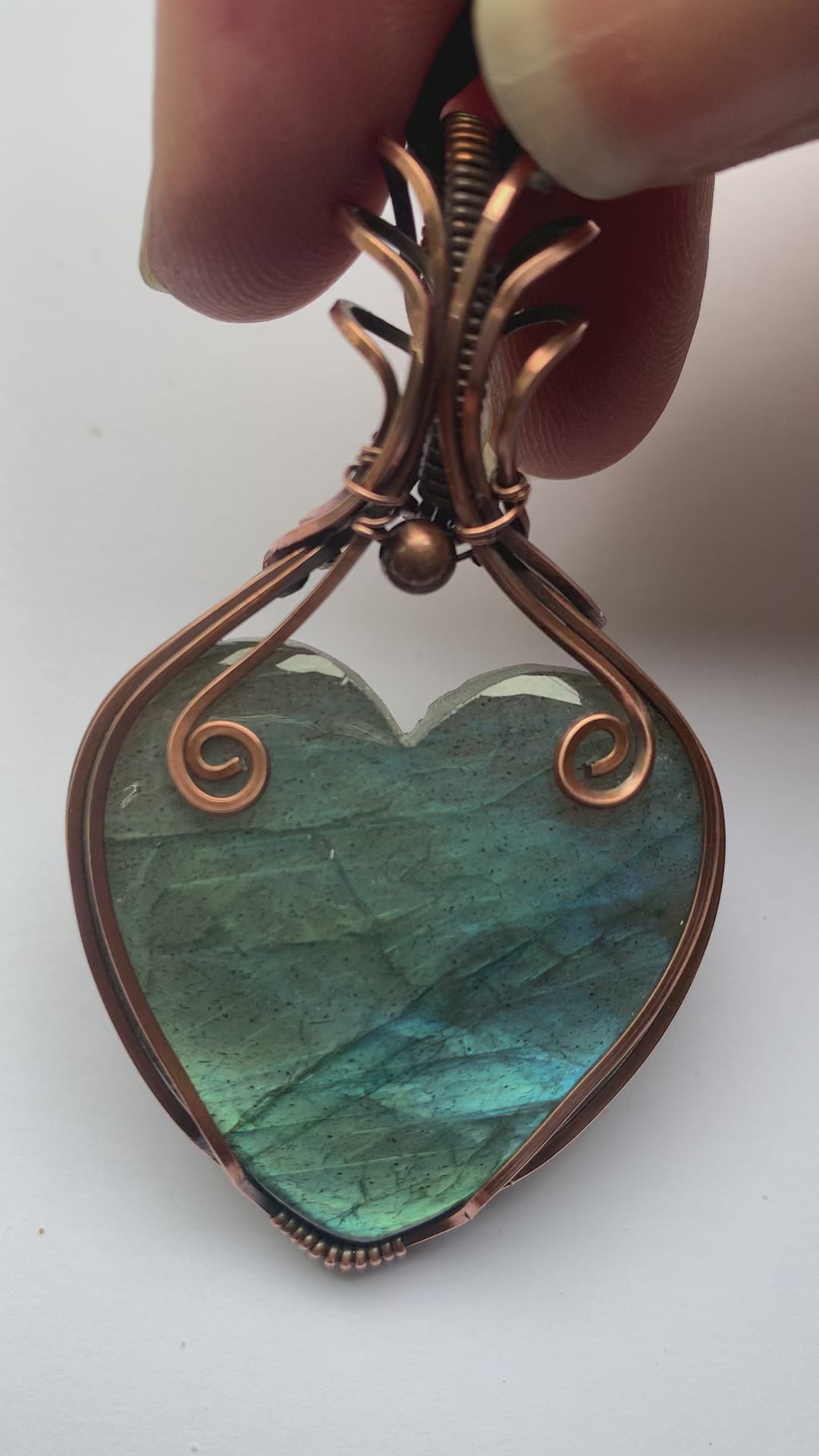 Hand wrapped in copper wire and oxidised to create an antique patina.