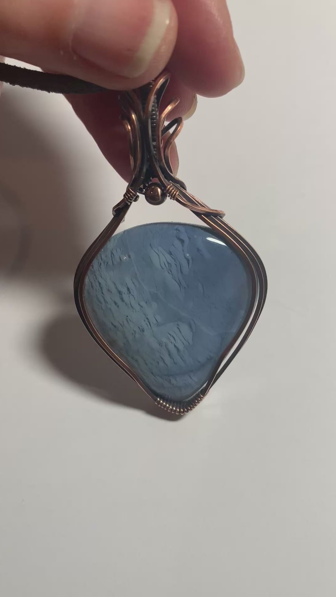 Hand wrapped in copper wire and oxidised to create an antique patina.