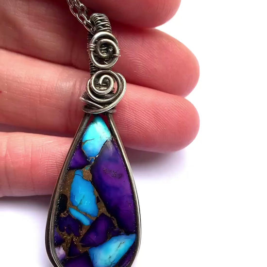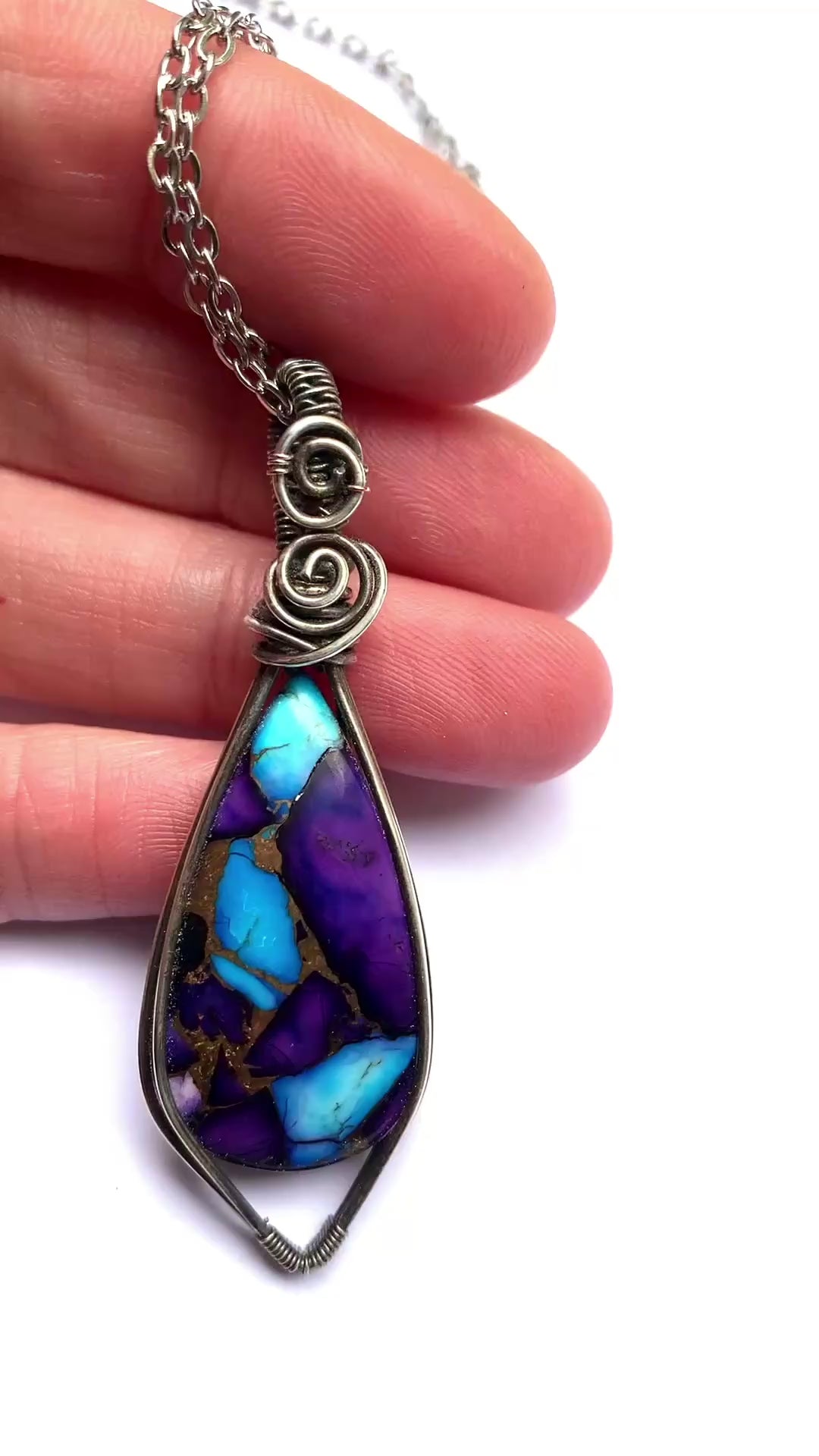 Hand wrapped in silver filled wire and oxidised to create an antique patina.