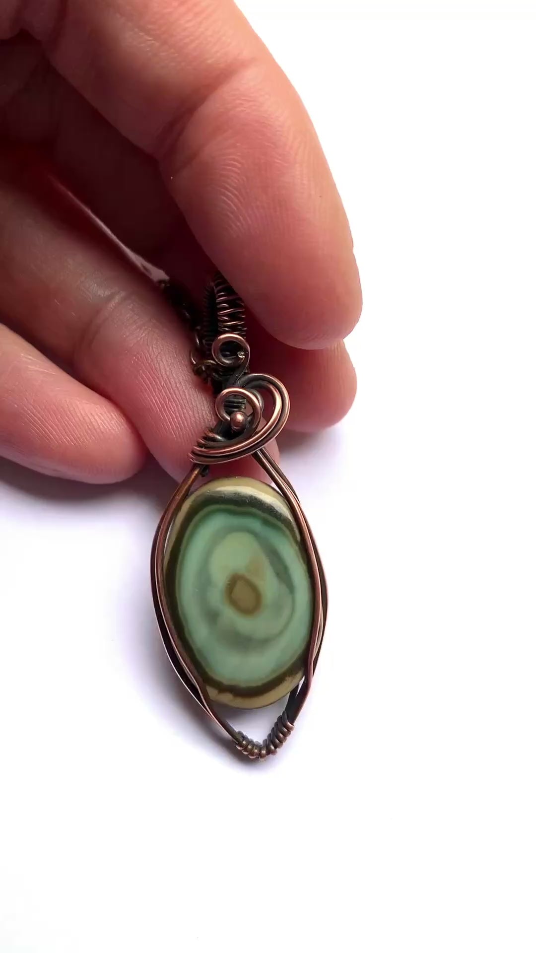 Hand wrapped in copper wire and oxidised to create an antique patina.