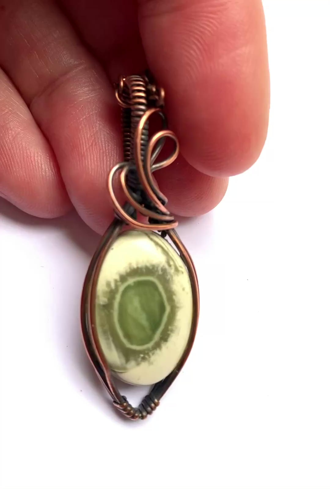 Hand wrapped in copper wire and oxidised to create an antique patina.