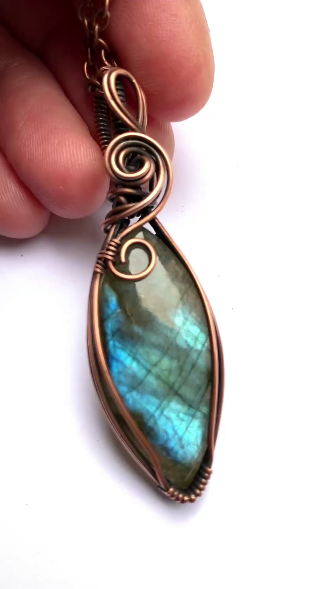 Hand wrapped in copper wire and oxidised to create an antique patina.