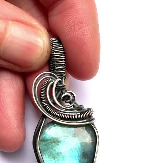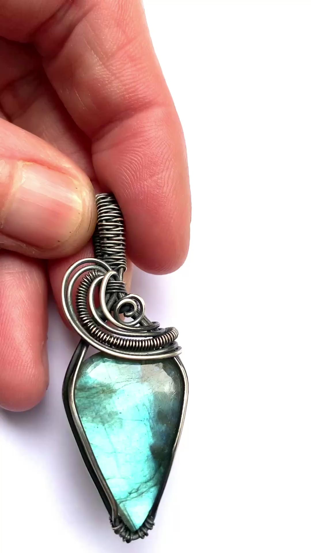 Hand wrapped in silver filled wire and oxidised to create an antique patina.