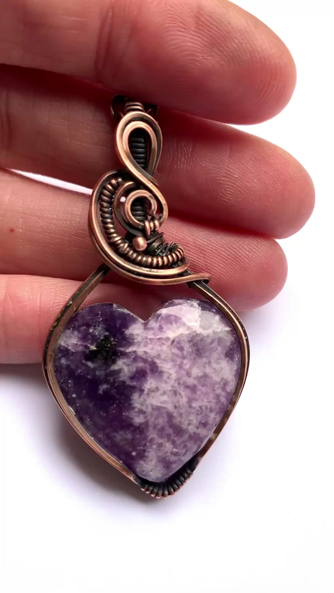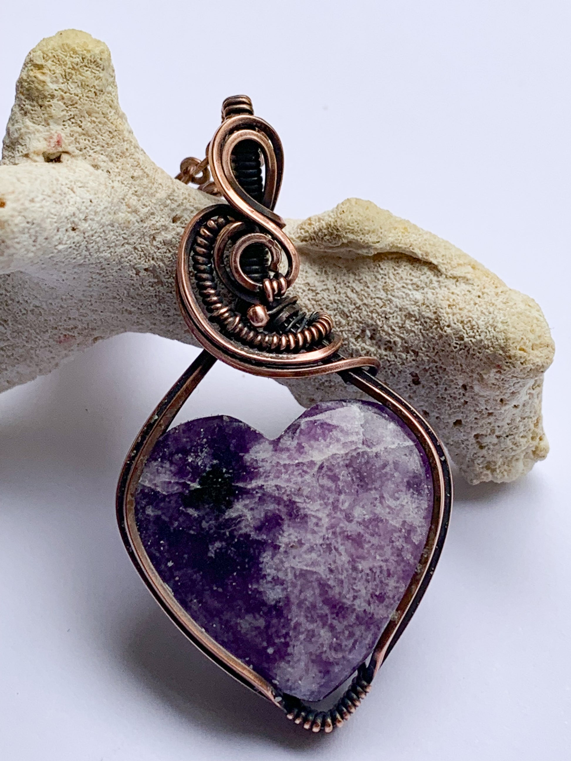 Hand wrapped in copper wire and oxidised to create an antique patina.