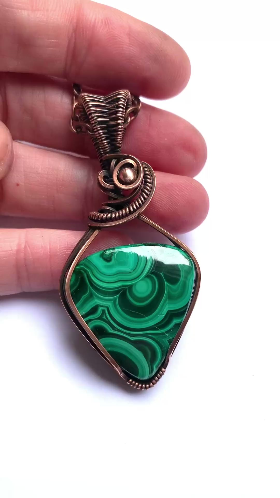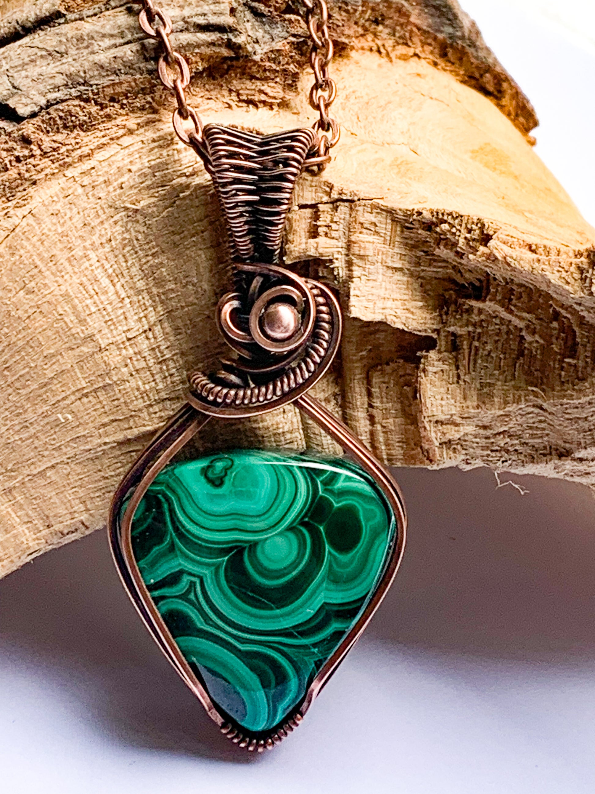 Hand wrapped in copper wire and oxidised to create an antique patina.