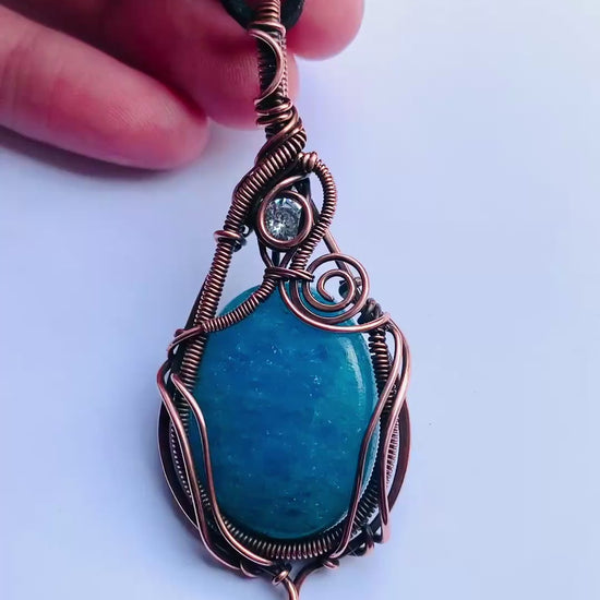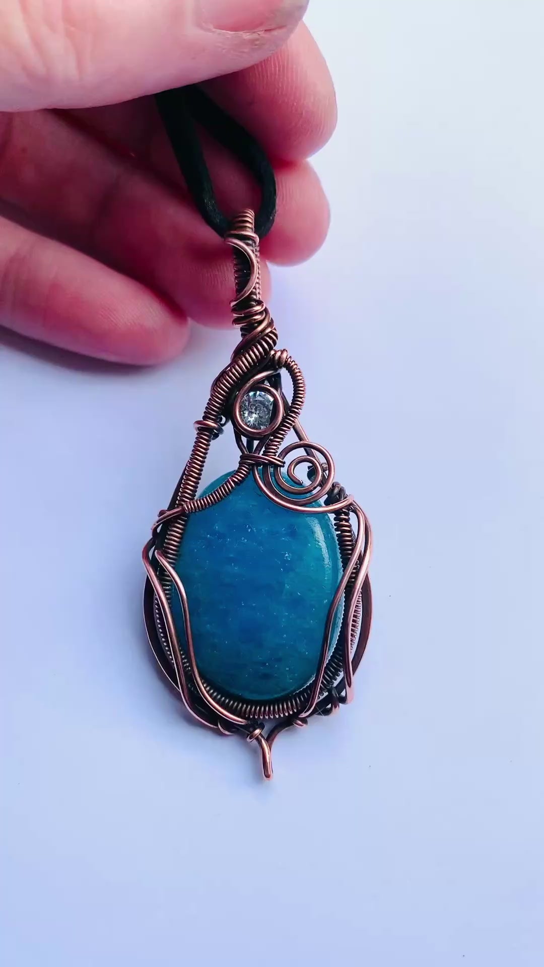 Hand wrapped in copper wire and oxidised to create an antique patina.