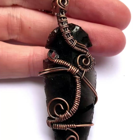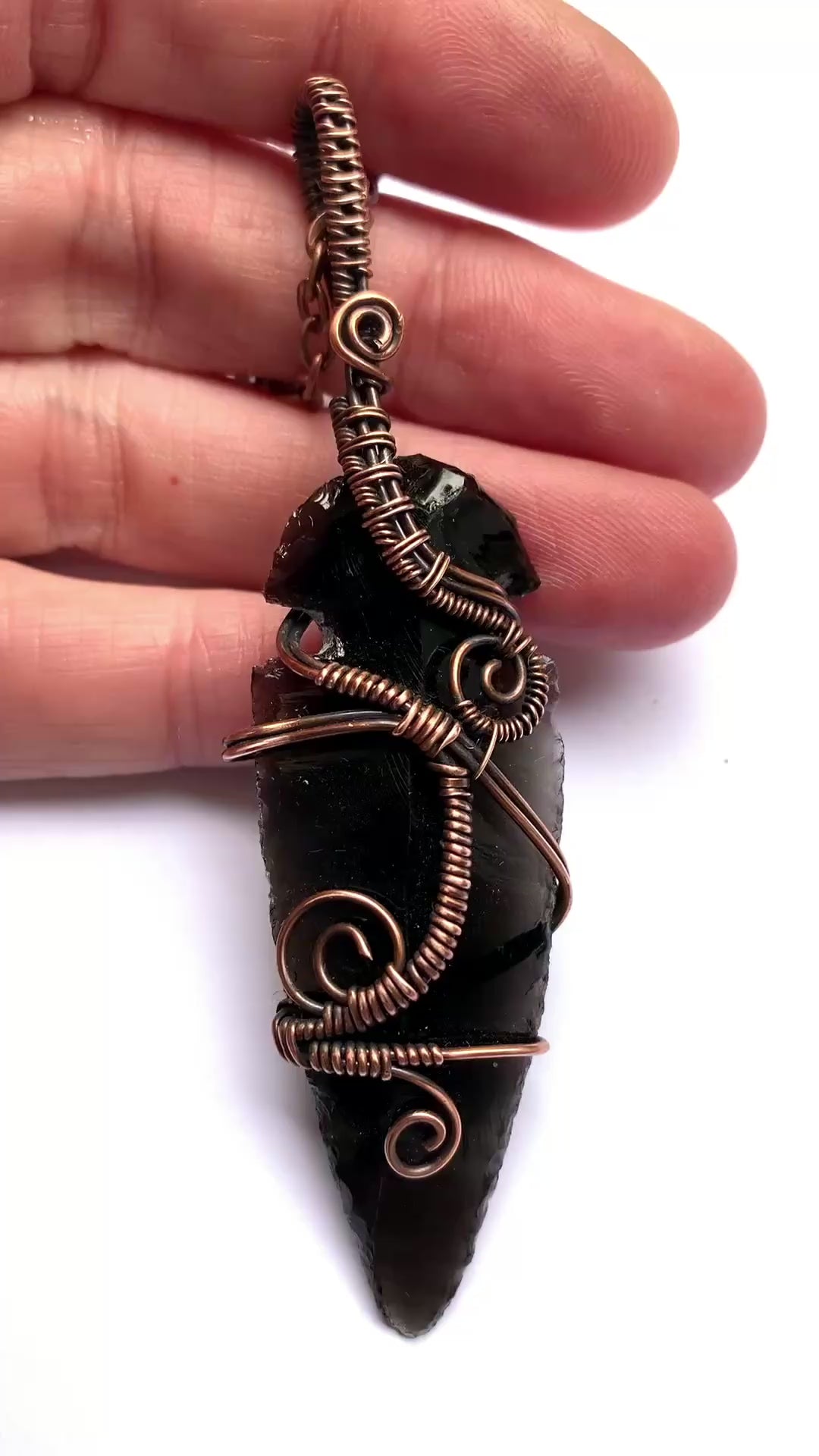 Hand wrapped in copper wire and oxidised to create an antique patina.
