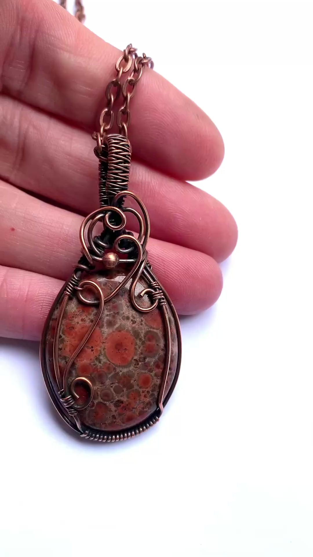 Hand wrapped in copper wire and oxidised to create an antique patina.