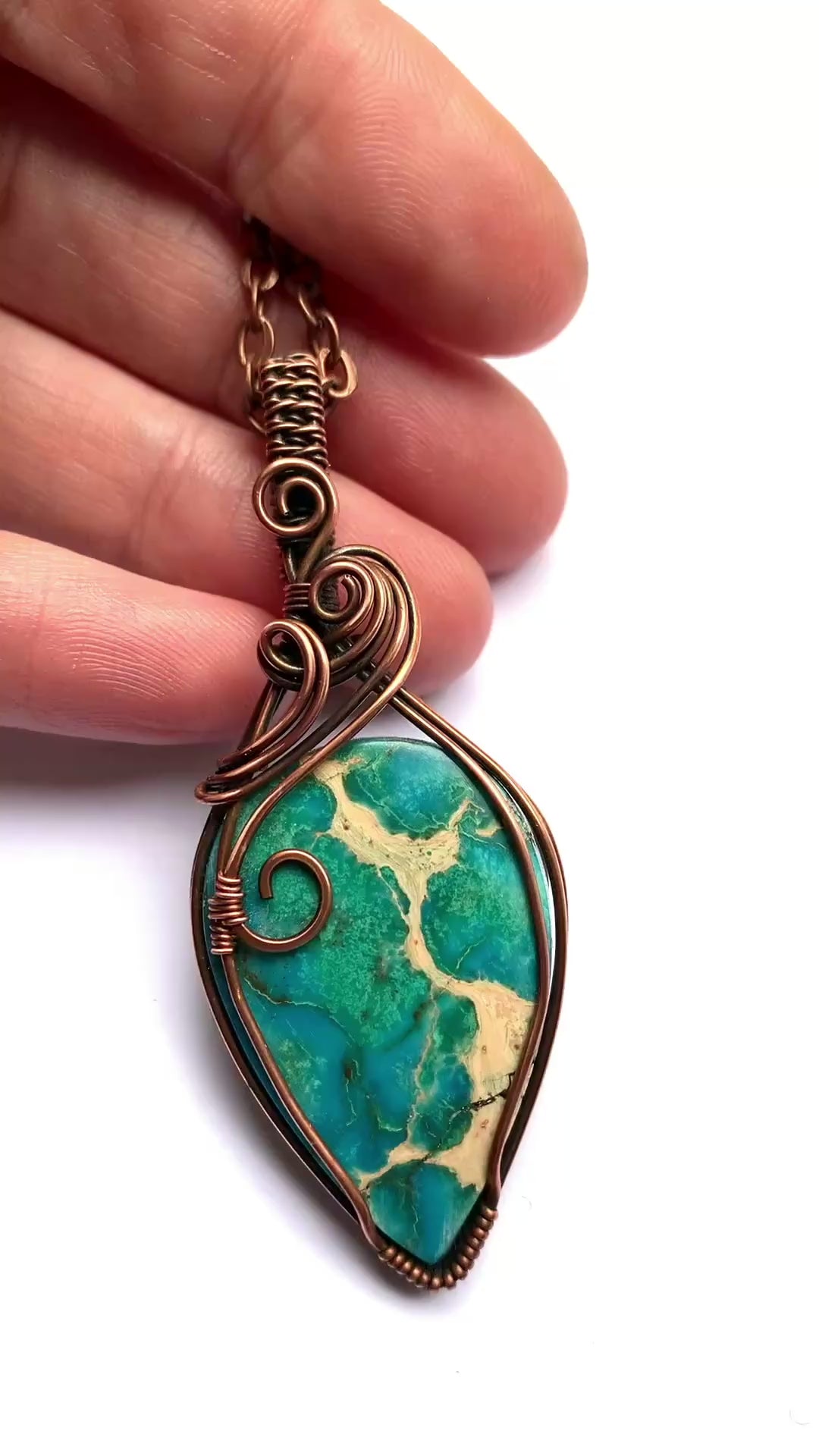 Hand wrapped in copper wire and oxidised to create an antique patina.
