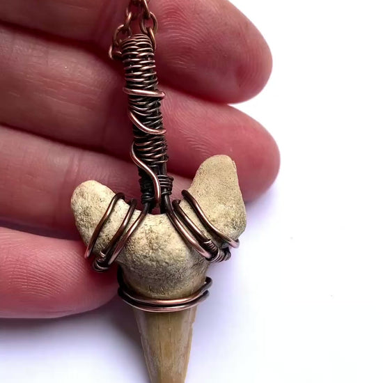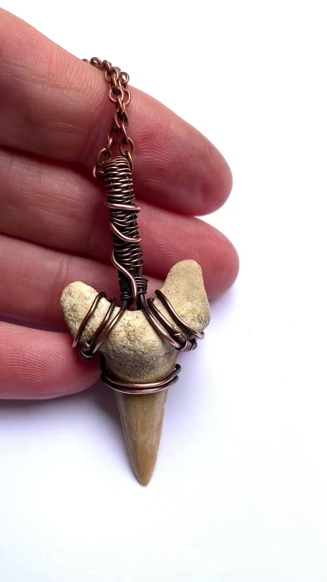 Hand wrapped in copper wire and oxidised to create an antique patina.